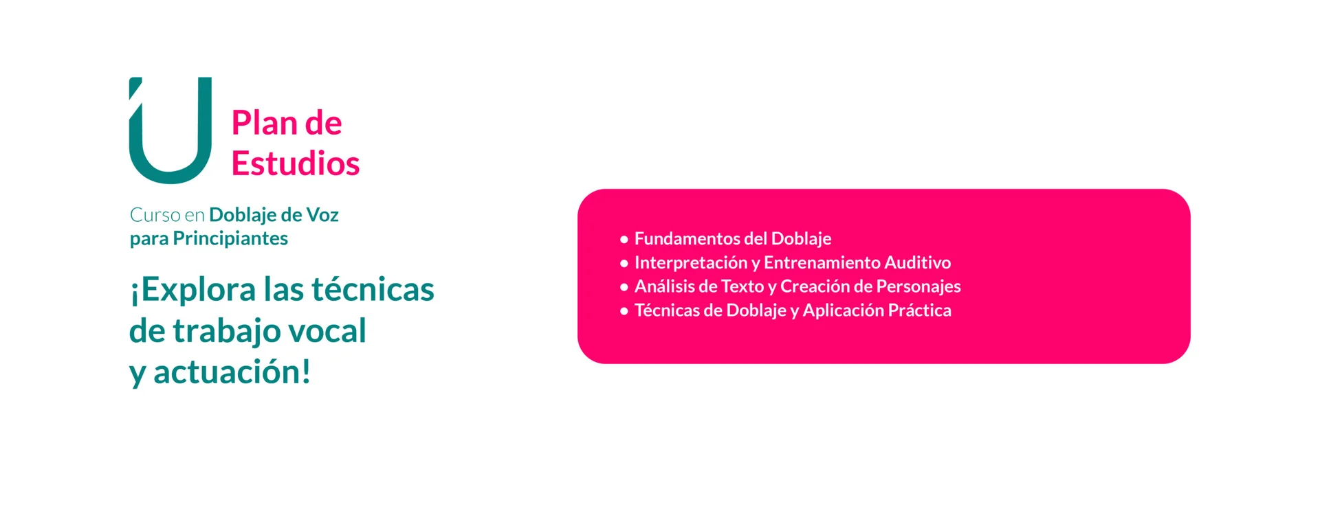 Al finalizar el curso, estarás listo para destacar con una voz poderosa, dinámica y profesional. Aprenderá los elementos básicos del doblaje de voz, para darle vida a personajes únicos. Mejorarás la calidad de tu voz mediante técnicas de respiración adecuadas. Perfeccionarás tu dicción, entonación y ritmo, asegurando un mensaje emocional y creativo.