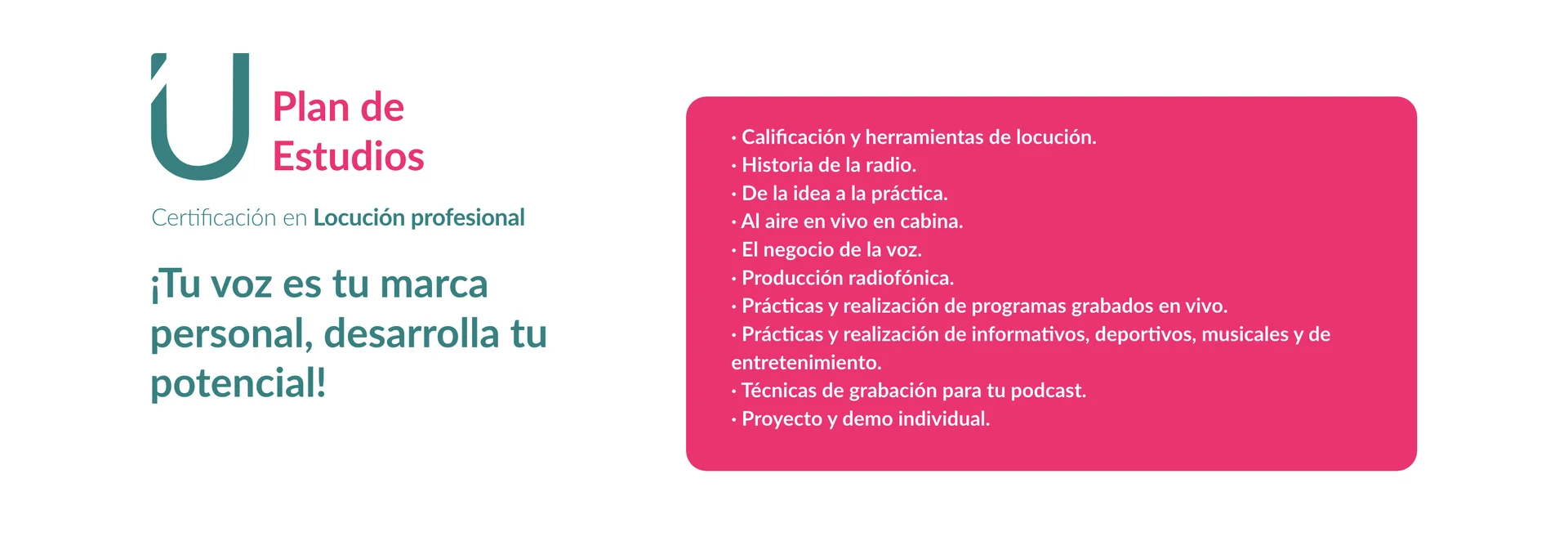 - Desarrolla tu voz como una herramienta poderosaConvierte tu voz en tu marca personal y destaca en cualquier proyecto.